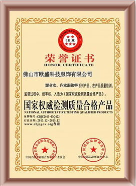 歐盛服飾榮獲多項產品證書